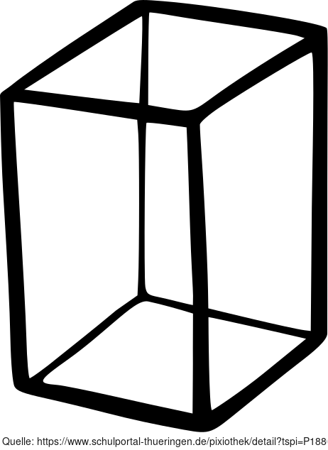 Die Zeichnung zeigt ein vierseitiges Prisma bzw. einen Quader. Ein vierseitiges Prisma (auch quadrangulares Prisma) ist ein dreidimensionaler Körper, der zwei kongruente und parallele Vierecke als Grundflächen und vier Parallelogramme als Seitenflächen besitzt, welche die entsprechenden Seiten der Grundflächen verbinden. Es ist ein Polyeder mit insgesamt sechs Flächen, zwölf Kanten und acht Ecken. Das Bild ist unter CC0 lizenziert und kann somit frei verwendet werden. Es ist neben weiteren Bildern auch hier zu finden: https://cocomaterial.com