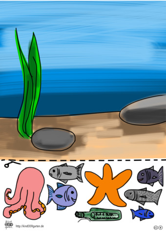 Das Bild zeigt das Motiv einer Unterwasserwelt (farbig) und kann als Schnipselbildvorlage für Kinder im Kindergarten bzw. Elementarbereich dienen. Das Bild ist unter CC0 lizenziert und kann somit frei verwendet werden. Es ist neben weiteren Bildern auch hier zu finden: https://kindoergarten.wordpress.com/