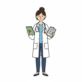 Das Bild zeigt eine gezeichnete Ärztin mit Stethoskop. Das Bild wurde mittels einer KI (Gemini) erstellt und ist unter CC0 lizenziert. Weitere Bilder aus Herrn Emrich-Försters Bild-Archiv findet man hier: https://pix.foerster.rocks/