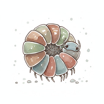 Das Bild zeigt eine gezeichnete Assel. Das Bild wurde mittels einer KI (Gemini) erstellt und ist unter CC0 lizenziert. Weitere Bilder aus Herrn Emrich-Försters Bild-Archiv findet man hier: https://pix.foerster.rocks/