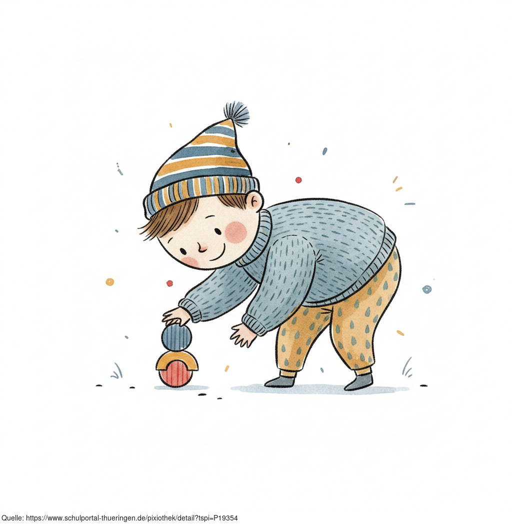 Das Bild zeigt ein Motiv zur Begrifflichkeit "etwas vom Boden aufheben" oder zum Begriff "spielen". Das Bild wurde mittels einer KI (Gemini) erstellt und ist unter CC0 lizenziert. Weitere Bilder aus Herrn Emrich-Försters Bild-Archiv findet man hier: https://pix.foerster.rocks/