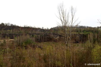 Das Bild zeigt den ehemaligen Steinbruch Buchenberg im Gebiet der Zechsteinriffe der Orlasenke bei Krölpa, Ranis und Pößneck im Saale-Orla-Kreis. Hier wurde im Zeitraum von 1943 bis 1978 Stahlwerks- und Düngekalk gewonnen. 1996 wurde der Buchenberg unter Naturschutz gestellt und ist ein weitestgehend ungestörter Trockenlebensraum u.a. für Orchideen wie die Bienen-Ragwurz (Ophrys apifera).