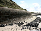 Spiekeroog: Gemauerte Steinwand vor Dünen