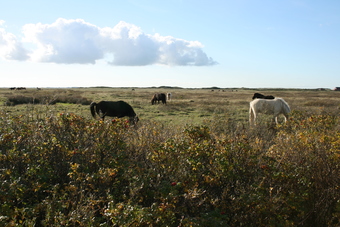 Spiekeroog: Marschlandschaft mit Pferden