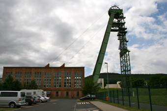 Das Foto gehört zur Serie "Salzbergwerk". Es zeigt den Förderturm im Erlebnisbergwerk Merkers. Es gelten die Nutzungsbedingungen der Mediothek und Pixiothek.