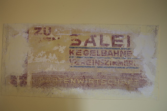Bauhaushotel Probstzella: Originalbeschriftung im Treppenhaus