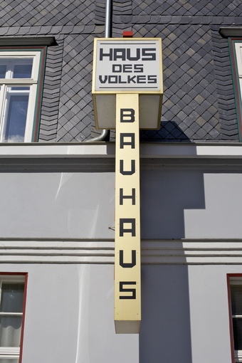 Die Bildersammlung beinhaltet Fotografien mit Innen- und Außenansichten vom Bauhaushotel in Probstzella (Haus des Volkes), aufgenommen 2012. Abgebildet ist das Schild im Eingangsbereich. Das Haus des Volkes in Probstzella (Thüringen) wurde von 1925 bis 1927 im Auftrag des Industriellen Franz Itting von Alfred Arndt und Ernst Gebhardt als Hotel und kulturelles Zentrum erbaut. Die Inneneinrichtung wurde vollständig von Künstlern des Bauhauses Dessau gestaltet, es handelt sich um das größte in Thüringen realisierte Bauhaus-Ensemble. Es gelten die Nutzungsbedingungen der Mediothek und Pixiothek.