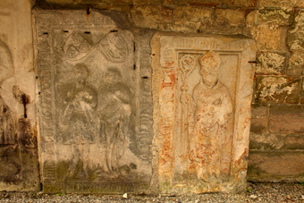 Das Foto gehört zur Serie "Klosterruine Paulinzella". Es zeigt Grabplatten. - - Es gelten die Hinweis für Bilder mit Motiven von Stiftungsobjekten der Stiftung Thüringer Schlösser und Gärten: Es gilt grundsätzlich, dass die Bilder ausschließlich zur Bereitstellung für Unterrichtszwecke verwendet werden dürfen. Jede Art der darüber hinausgehenden Publikation der von einem Standort innerhalb der Stiftungs-Liegenschaften aufgenommenen Motive bedarf einer gesonderten schriftlichen Genehmigung durch die Stiftung Thüringer Schlösser und Gärten.