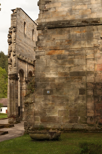 Das Foto gehört zur Serie "Klosterruine Paulinzella". Es zeigt die Reste des Turmes. - - Es gelten die Hinweis für Bilder mit Motiven von Stiftungsobjekten der Stiftung Thüringer Schlösser und Gärten: Es gilt grundsätzlich, dass die Bilder ausschließlich zur Bereitstellung für Unterrichtszwecke verwendet werden dürfen. Jede Art der darüber hinausgehenden Publikation der von einem Standort innerhalb der Stiftungs-Liegenschaften aufgenommenen Motive bedarf einer gesonderten schriftlichen Genehmigung durch die Stiftung Thüringer Schlösser und Gärten.