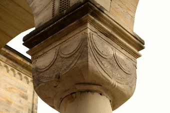 Das Foto gehört zur Serie "Klosterruine Paulinzella". Es zeigt ein Romanisches Kapitell. - -