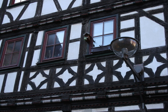 Das Foto gehört zur Serie "Schmalkalden". Es zeigt das Fachwerk eines Hauses in der Altstadt. Es gelten die Nutzungsbedingungen der Mediothek und Pixiothek.