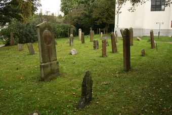 Die Bilderserie enthält ausgewählte Fotografien von der Insel Hiddensee. Dieses Bild zeigt den Inselfriedhof in Kloster, wo man das Grab Gerhart Hauptmanns findet. Es gelten die Nutzungsbedingungen der Mediothek und Pixiothek.