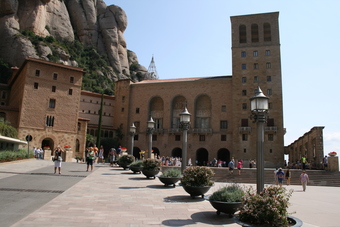 Die Bildersammlung enthält ausgewählte Fotografien vom Kloster Santa Maria de Montserrat, nordwestlich von Barcelona. Zu sehen ist eine Frontansicht des Klosters.