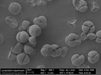 Das Bild gehört zu einer Serie Pollen-Fotografien, die mit einem Rasterelektronenmikroskop aufgenommen wurden. Zu sehen sind Pollen von Lycopodium phlegnaria , dem Bärlapp (spec.). Entstanden ist das Bild im Zuge der Ausbildung zum Biologielaboranten/ zur Biologielaborantin an der Uni Jena.