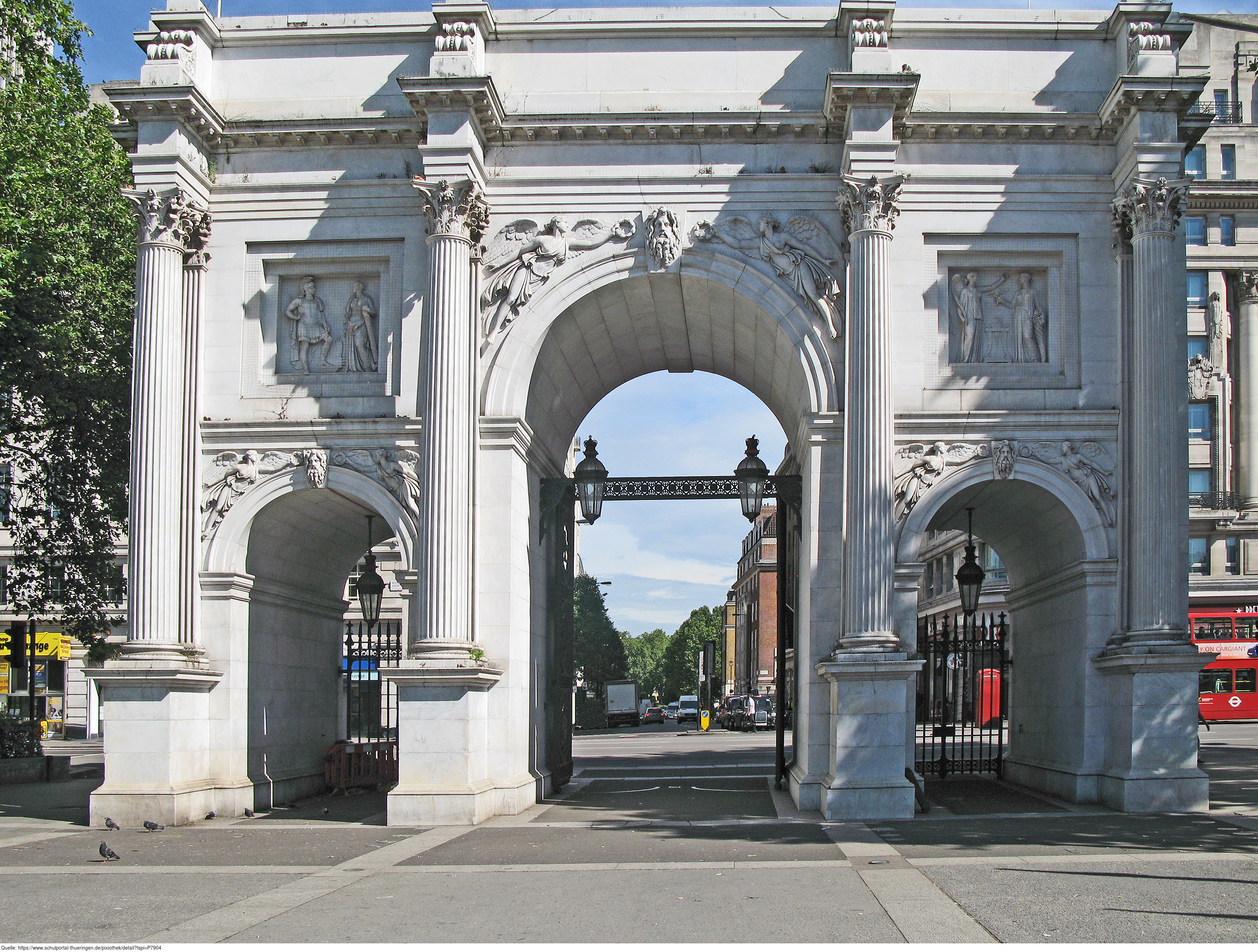 Das Foto gehört zur Serie London 2016. Es zeigt Marble Arch (Marmorbogen), ein Monument aus weißem Carrara-Marmor in der Nähe der Speakers’ Corner im Hyde Park. Es gelten die Nutzungsbedingungen der Mediothek und Pixiothek.