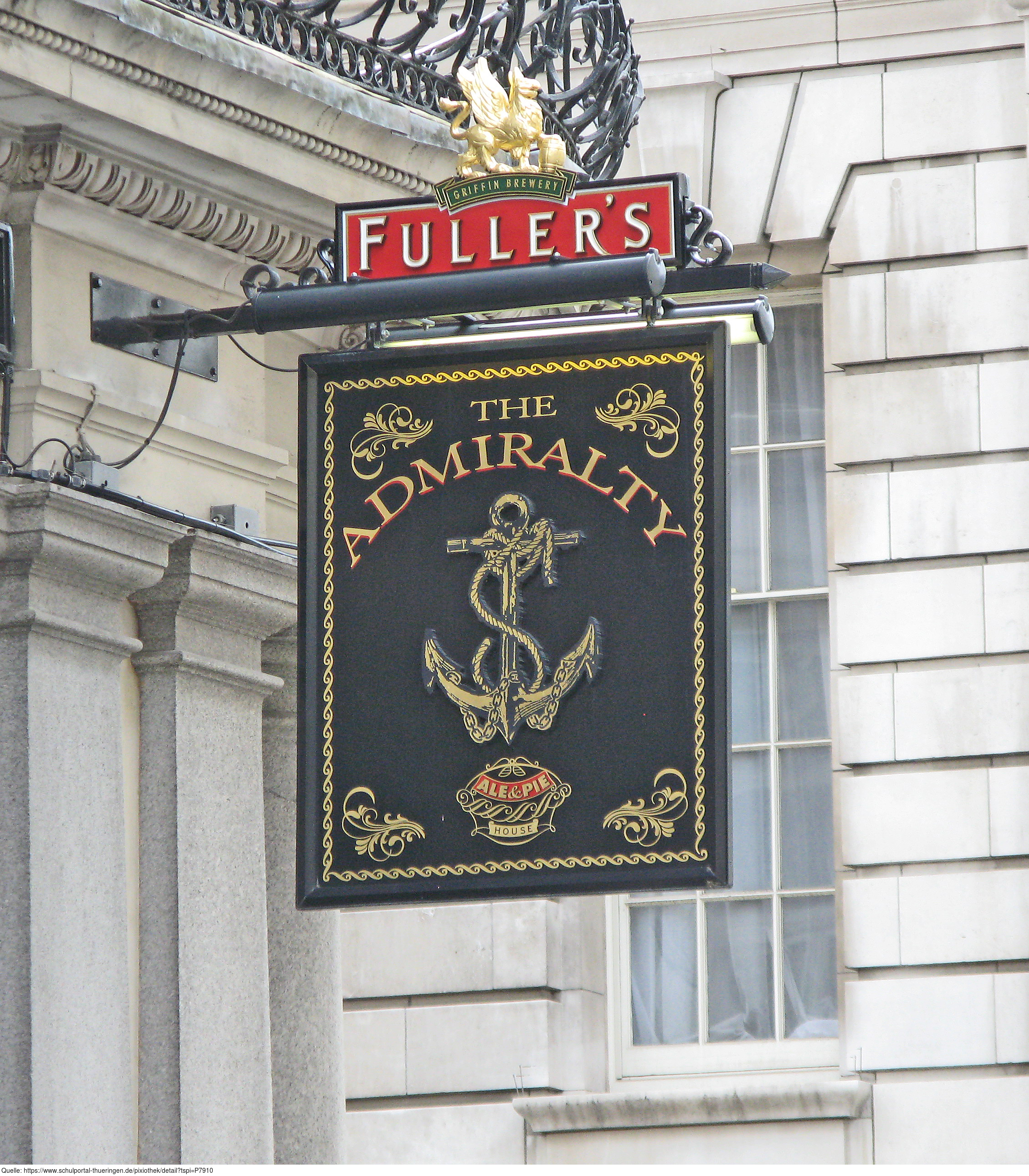 Das Foto gehört zur Serie London 2016. Es zeigt das Schild des Restaurants "The Admirality" unweit vom Trafalgar Square. Es gelten die Nutzungsbedingungen der Mediothek und Pixiothek.