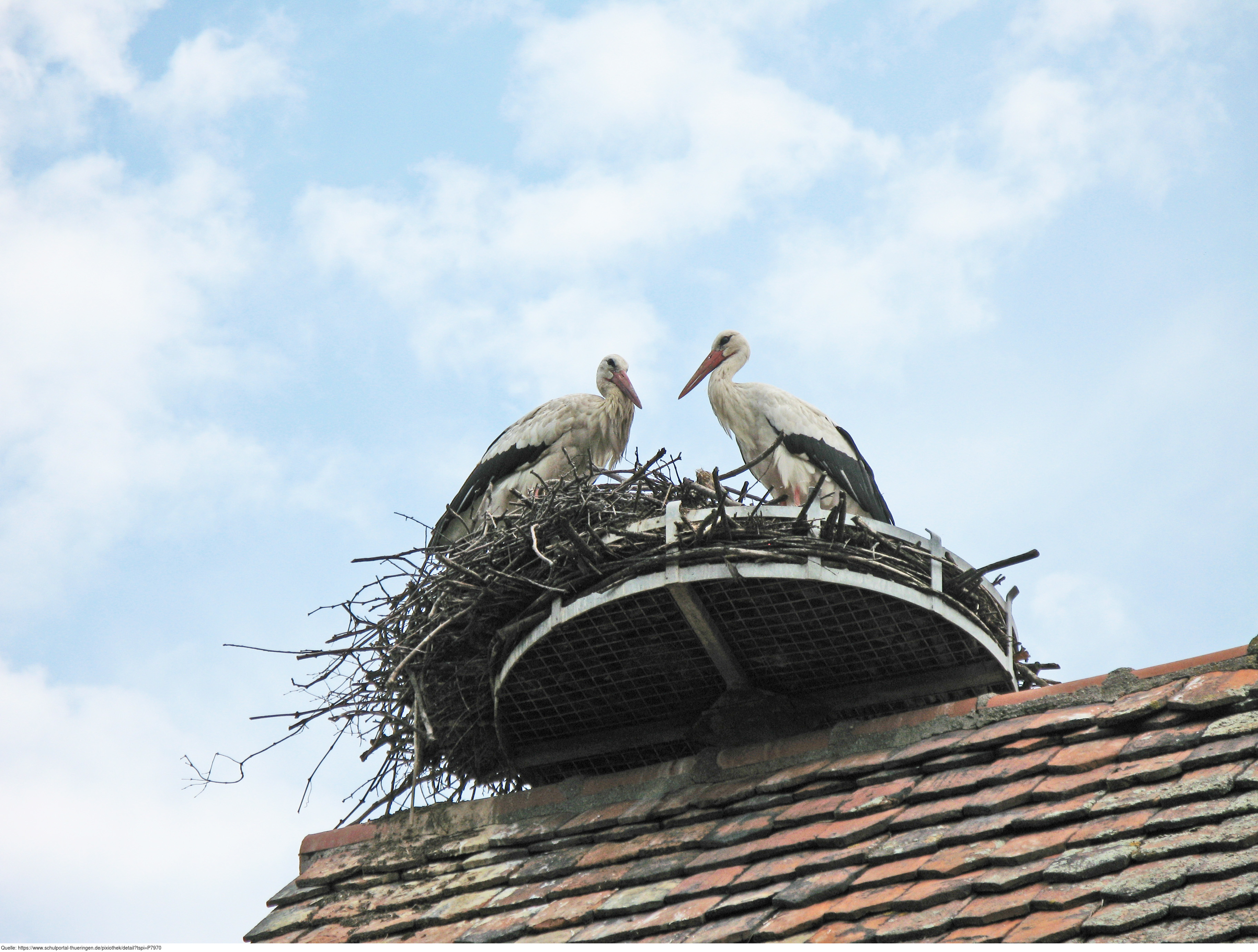 Das Foto gehört zur Serie Störche. Es zeigt zwei Weißstörche (Ciconia ciconia) im Nest. Es gelten die Nutzungsbedingungen der Mediothek und Pixiothek.