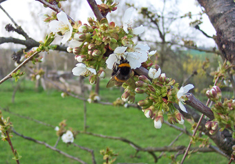 Das Foto gehört zur Serie Obstbäume. Es zeigt Kirschblüten der Süßkirsche. Es gelten die Nutzungsbedingungen der Mediothek und Pixiothek.