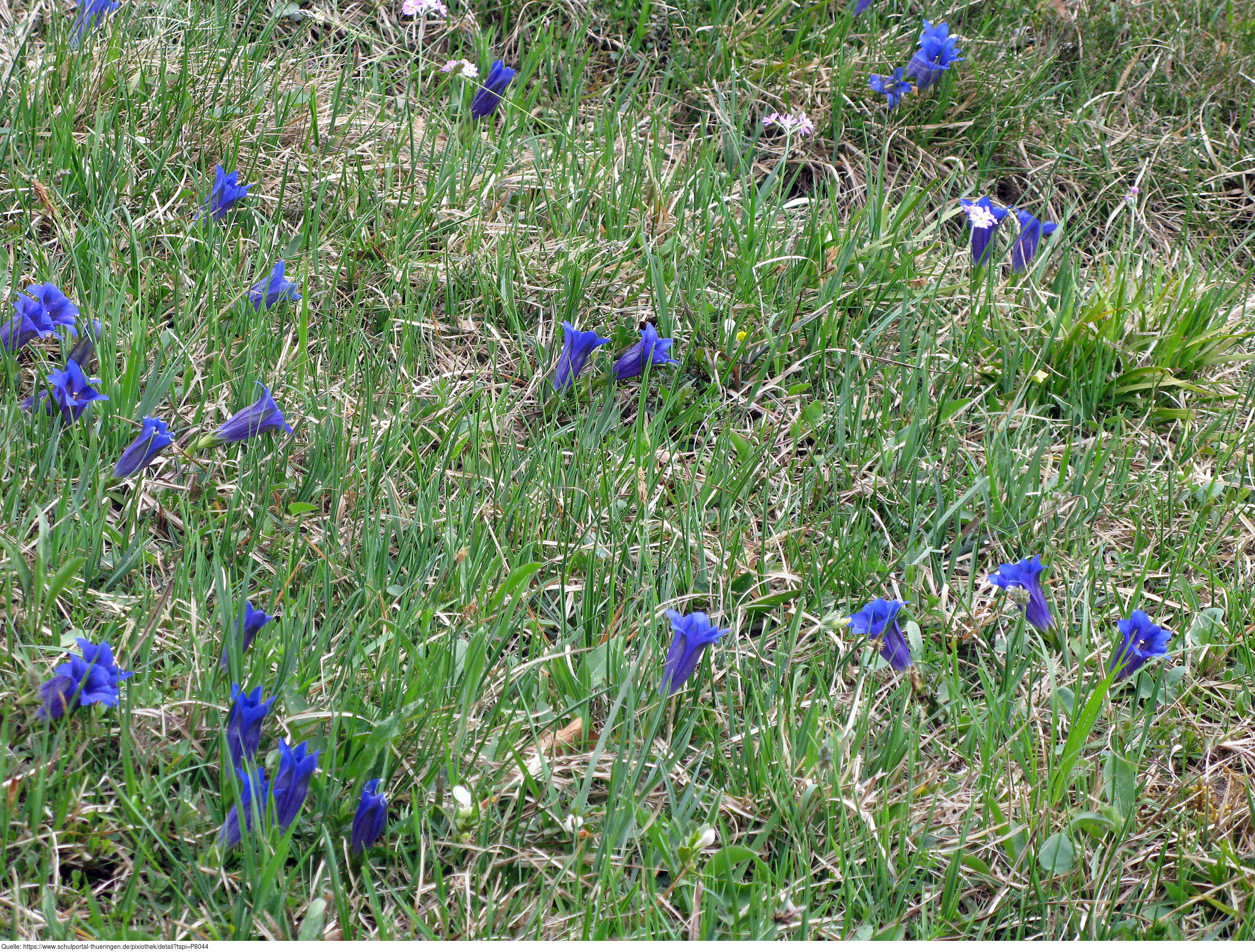 Das Bild gehört zur Serie "Alpen". Es zeigt eine Gebirgswiese in Österreich mit Enzianblüten. Es gelten die Nutzungsbedingungen der Mediothek und Pixiothek.
