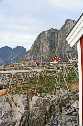 Das Foto gehört zur Serie "Lofoten". Es zeigt Trockengestelle beim Ort Rorbue. Es gelten die Nutzungsbedingungen der Mediothek und Pixiothek.