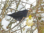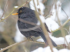 Das Foto gehört zur Serie "Vögel im Winter". Es zeigt ein Amselmännchen. Es gelten die Nutzungsbedingungen der Mediothek und Pixiothek.