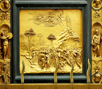 Das Foto gehört zur Serie "Paradiestür am Baptisterium von Florenz". Es zeigt Moses, ein Bronzerelief von Lorenzo Ghiberti. Es ist links in der vierten Reihe der zehn Bildtafeln in seine Paradiestür (auch Paradiespforte genannt) eingebunden. Es gelten die Nutzungsbedingungen der Mediothek und Pixiothek.