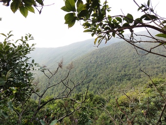 Das Foto gehört zur Serie "Hong Kong Trail". Es zeigt den Blick vom Weg auf die Berge bei Hong Kong. Es gelten die Nutzungsbedingungen der Mediothek und Pixiothek.