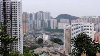 Das Foto gehört zur Serie "Hong Kong Trail". Es zeigt Aberdeen Harbour. ein typisches Bild für Hong Kong, der Mix aus Hafen, Friedhof und Wohnhäusern auf engstem Raum. Es gelten die Nutzungsbedingungen der Mediothek und Pixiothek.