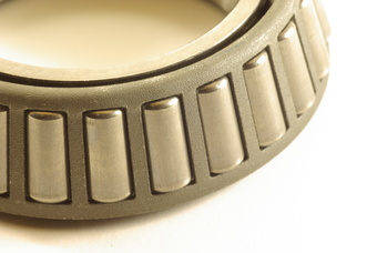Wälzlager sind Lager, bei denen zwischen den Ringen befindliche Rollkörper den Reibungswiderstand verringern. Zu sehen ist hier ein Kegelrollenlager. Diese Lager sind aufgrund ihrer Bauart sowohl in radialer als auch in axialer Richtung stark belastbar.