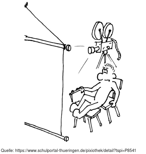Das Foto gehört zur Serie "Paul". Es zeigt Paul, einen Filmprojektor und eine Projektionswand. Das Bild ist unter CC0 lizenziert und kann somit frei verwendet werden.