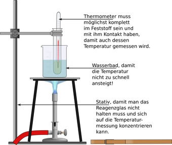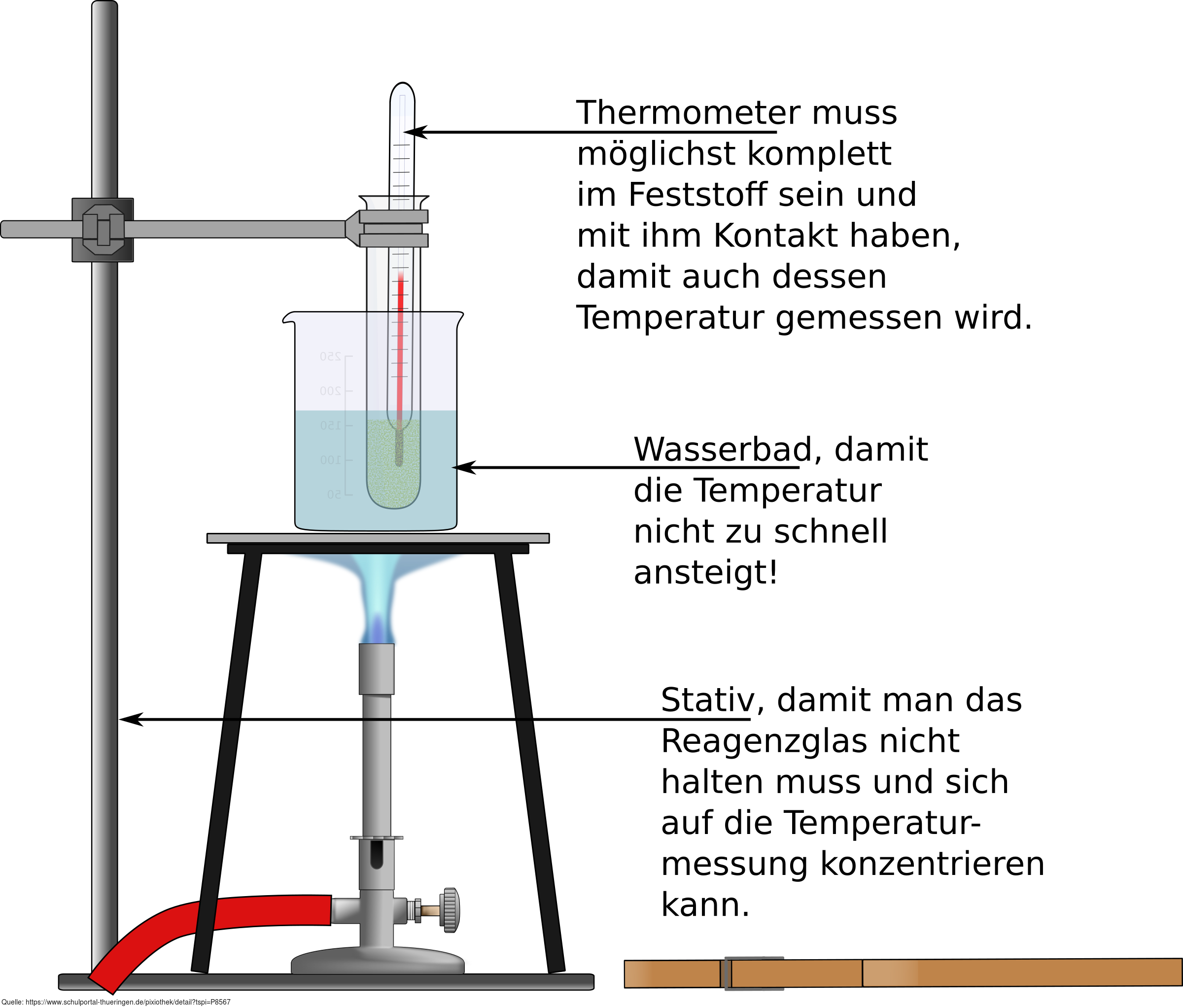 Das Bild gehört zur Serie "Experimente Chemie". Es zeigt ein Experiment zur Bestimung der Schmelztemperatur. Das Bild ist unter CC0 lizenziert und kann somit frei verwendet werden.