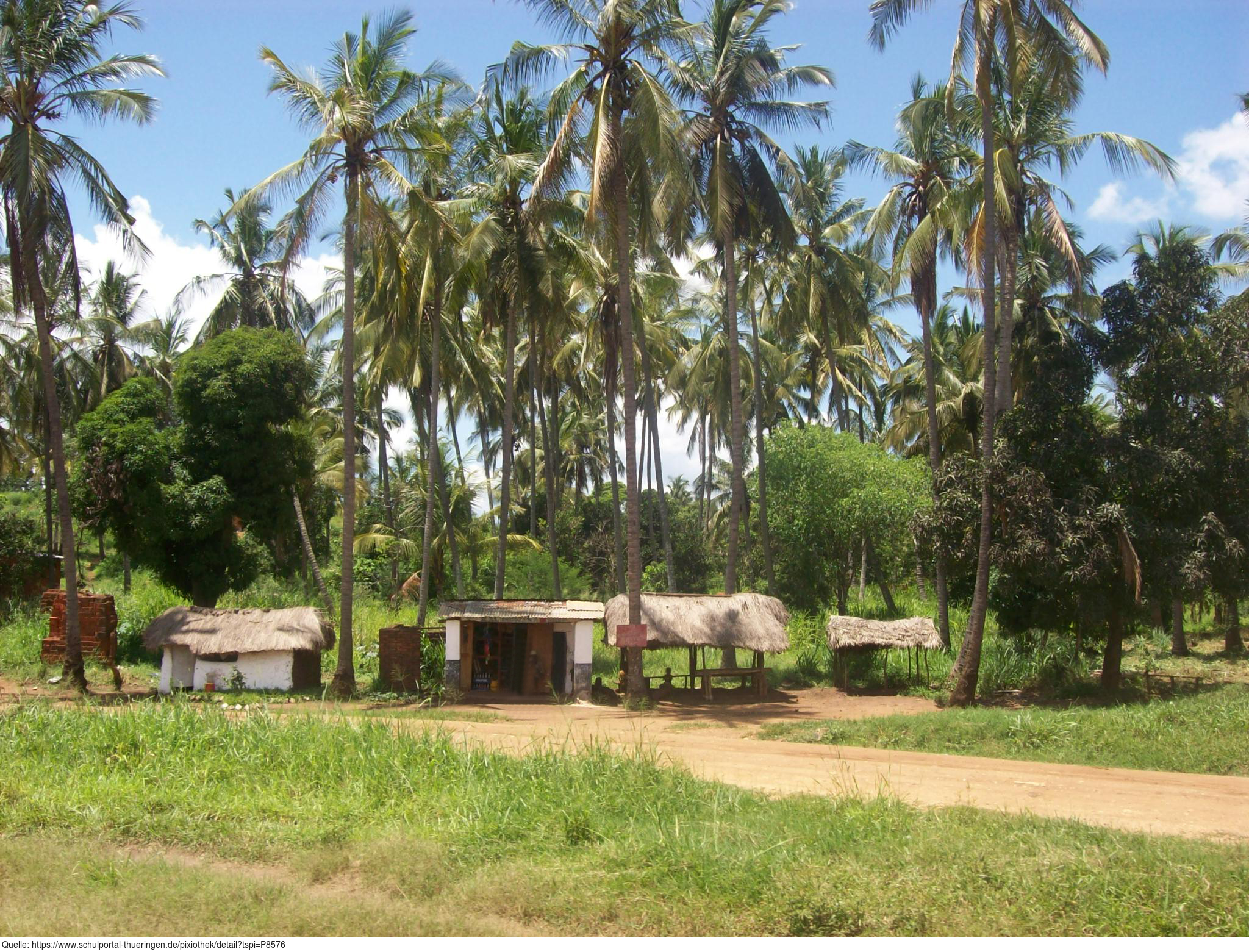 Das Bild zeigt Gebäude einer Siedlung in Tansania. In der Mitte befindet sich ein kleiner Laden. Es gelten die Nutzungsbedingungen der Mediothek und Pixiothek.
