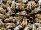 Bienenkönigin umringt von Arbeiterinnen