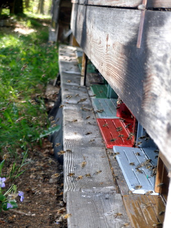 Das Foto gehört zur Serie "Insekten". Es zeigt eine Magazinbeute, die von Imkern als Behausung für ihre Bienenvölker eingesetzt wird und Bienen im Anflug auf ihren Bienenstock. Das Bild ist unter CC0 lizenziert und kann somit frei verwendet werden.