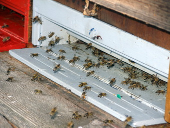 Das Foto gehört zur Serie "Insekten". Es zeigt eine Magazinbeute, die von Imkern als Behausung für ihre Bienenvölker eingesetzt wird und Bienen im Anflug auf ihren Bienenstock. Das Bild ist unter CC0 lizenziert und kann somit frei verwendet werden.