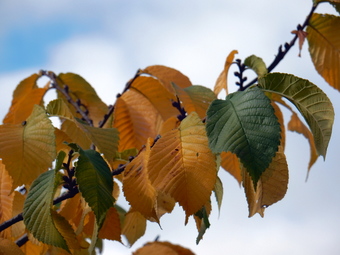 Das Foto gehört zur Serie "Blätter von Laubbäumen". Es zeigt den Ast einer Ulme mit Blättern im Herbst. Das Bild ist unter CC0 lizenziert und kann somit frei verwendet werden.