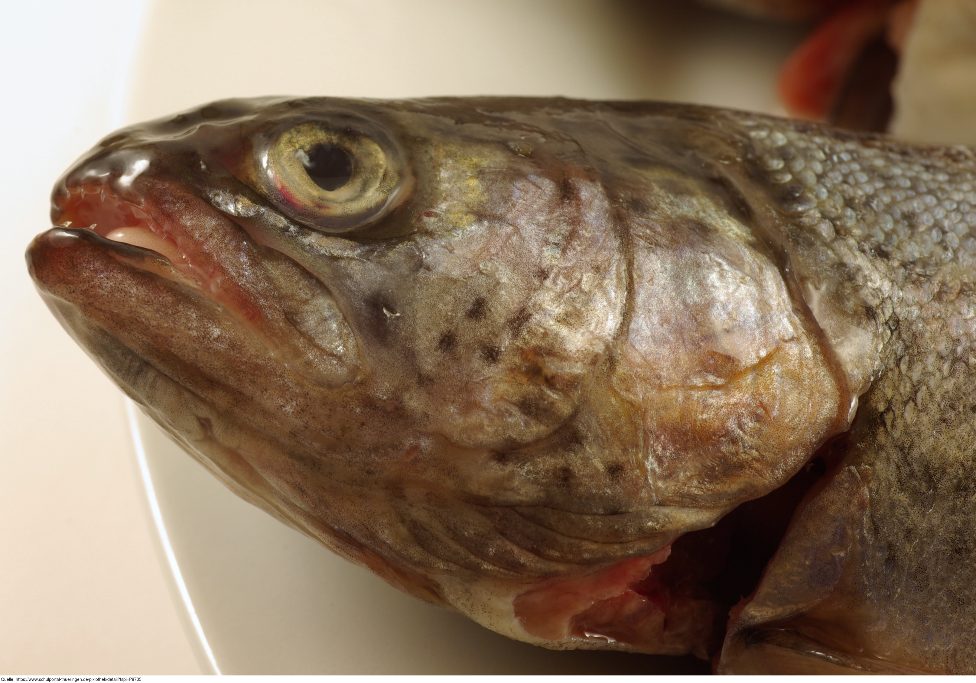 Das Foto gehört zur Serie "Nahrungsmittel". Es zeigt den Kopf einer Forelle. Das Bild ist unter CC0 lizenziert und kann somit frei verwendet werden.