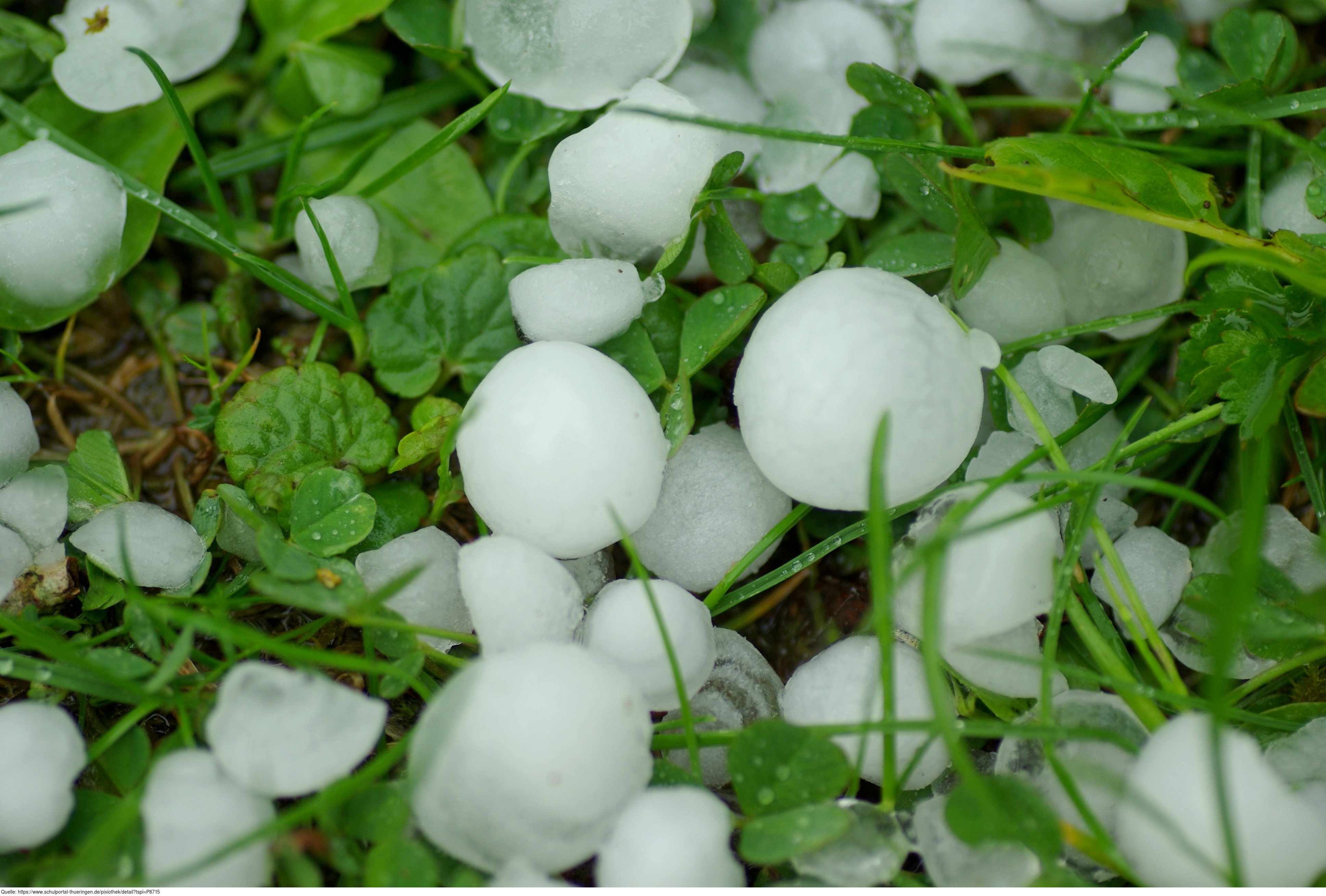 Das Foto gehört zur Serie "Wetter - Niederschlag". Es zeigt Hagelkörner auf einer Wiese. Das Bild ist unter CC0 lizenziert und kann somit frei verwendet werden.