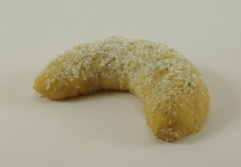 Das Foto gehört zur Serie "Nahrungsmittel". Es zeigt ein Vanillekipferl, ein traditionelles deutsch-österreichisch-böhmisches Weihnachtsgebäck. Das Bild ist unter CC0 lizenziert und kann somit frei verwendet werden.