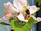 Gehörnte Mauerbiene auf einer Apfelblüte