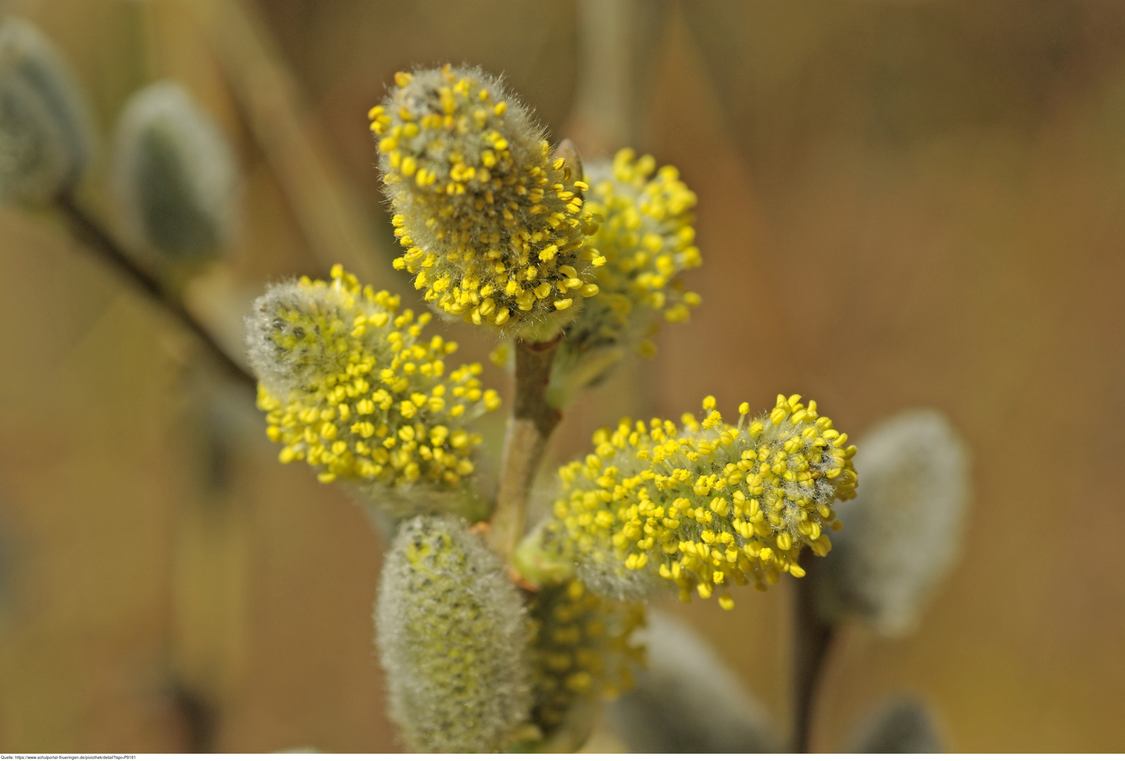 Das Foto gehört zur Serie "Laubbäume". Es zeigt Weidenkätzchen d. h. Blütenkätzchen der Weiden (Salix). Das Bild ist unter CC0 lizenziert und kann somit frei verwendet werden.