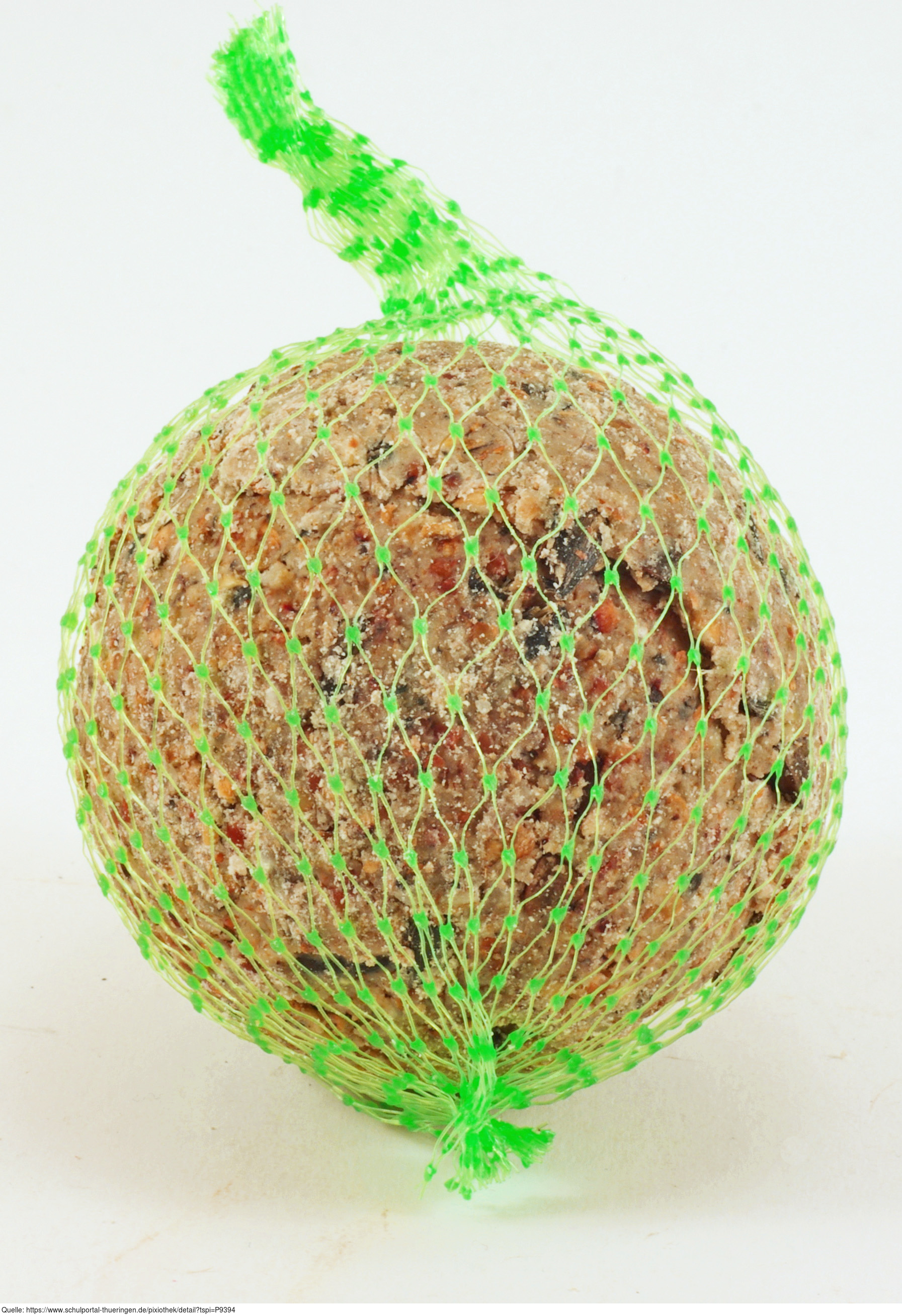 Das Foto gehört zur Serie "Vögel im Winter". Es zeigt einen Meisenknödel, eine auf die Bedürfnisse speziell von Meisen abgestimmte Winterfutter-Ergänzung. Das Bild ist unter CC0 lizenziert und kann somit frei verwendet werden.