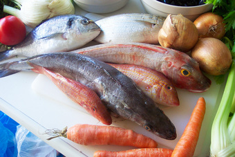 Das Bild gehört zur Serie "Provence und Côte d’Azur". Es zeigt die Zutaten für ein Fischgericht (Bouillabaisse). Das Bild ist unter CC0 lizenziert und kann somit frei verwendet werden.