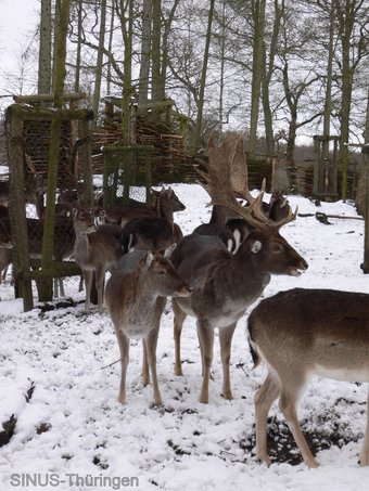 Abgebildet ist ein Rudel Damhirsche (Dama dama), jägersprachlich auch Damwild genannt. Die Tiere gehören zur Familie der Hirsche. Es gelten die Nutzungsbedingungen der Mediothek und Pixiothek.
