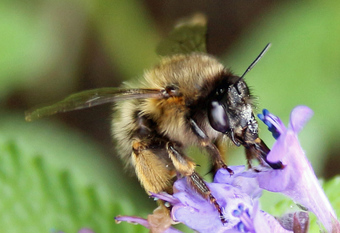 Gehörnte Mauerbiene auf einer Apfelblüte