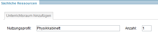 In das Eingabefeld "Nutzungsprofil" wird die Raumart eingetragen. Hier sollte man eine Auflistung aller wichtigen Unterrichtsräume und Fachkabinette vornehmen. Die Liste im Schulporträt wird hinsichtlich der Medienausstattung automatisch durch Angaben aus der Statistik ergänzt. Aus diesem Grund sollten mögliche Dopplungen in der Aufzählung vermieden werden. Eine Mehrfachauswahl erreichen Sie, indem Sie wiederholt über mit der Schaltfläche Unterrichtsraum hinzufügen einen Eintrag hinzufügen.