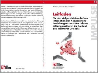 Dieser Leitfaden will über die Voraussetzungen, Rahmenbedingungen, Möglichkeiten, Potenziale und Grenzen informieren, die in der Kooperation zwischen Lehrerfort- und –weiterbildungsinstituten auf europäischer Ebene wirken können, und beschreibt Erfahrungen, die das Thüringer Institut für Lehrerfortbildung, Lehrplanentwicklung und Medien (Thillm) auf diesem Gebiet in den vergangenen Jahren gemacht hat. Anhand eines Mehrebenenmodell zur strategischen Planung internationaler Beziehungen im Bildungsbereich wird u.a. gezeigt, welche umfassend systemischen Auswirkungen auch Einzelmaßnahmen haben können, welche verschiedenen Ebenen und Subsysteme bei der Planung und Realisierung von Bildungskooperationen beachtet und einbezogen werden müssen und welche Grundsätze bei Kommunikation und sozialer Interaktion zu beachten sind - Handlungs- und Checklisten runden diesen Leitfaden ab.